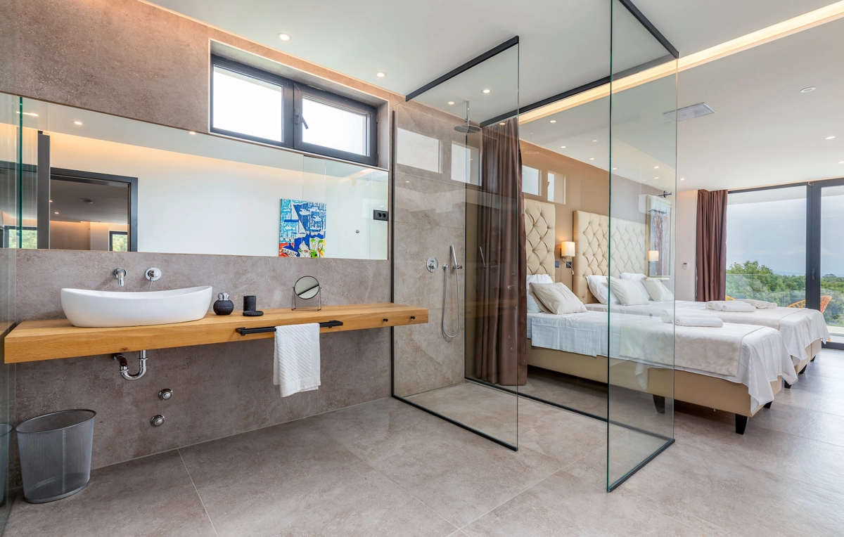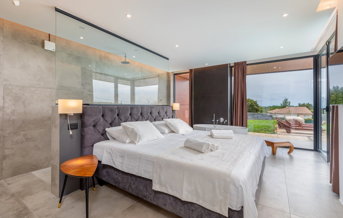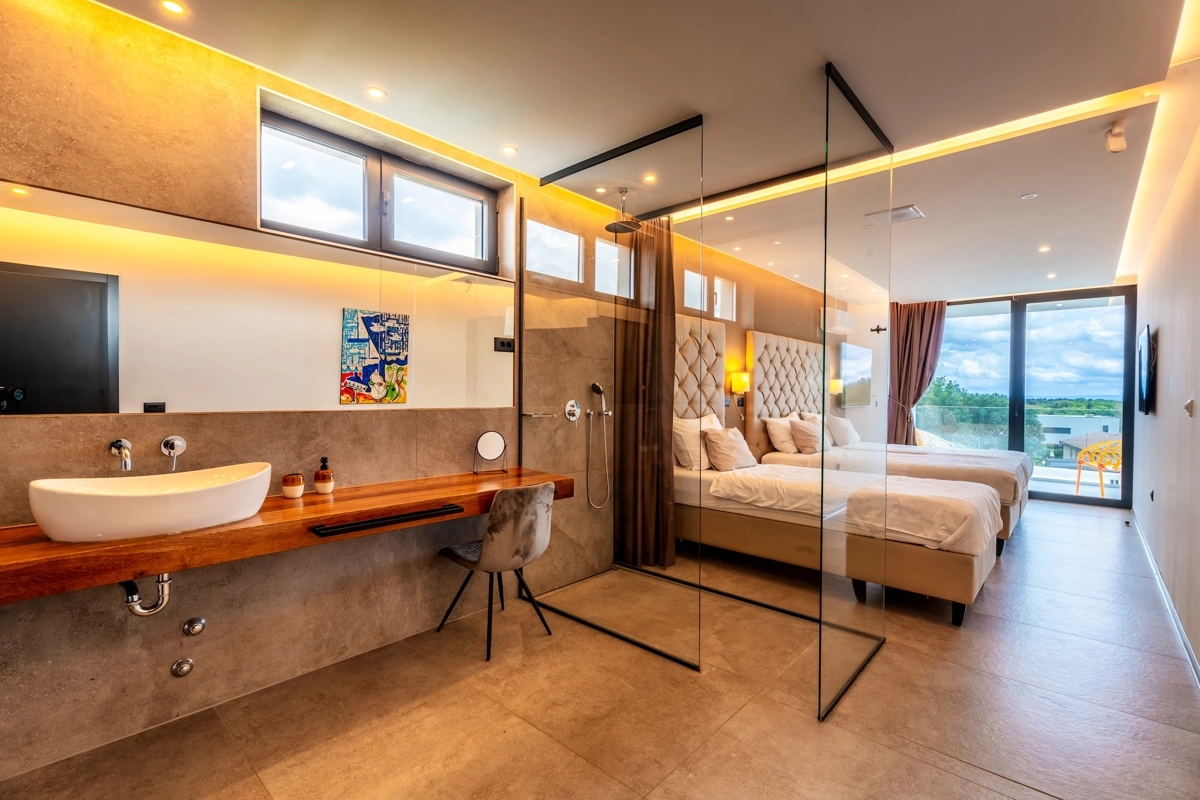 Beautiful and fully decorated villa C Istria is a real architectural attraction and will exceed all your expectations. This unique villa has 4 fully air-conditioned bedrooms, each with its own bathroom and can accommodate a maximum of 9 people.